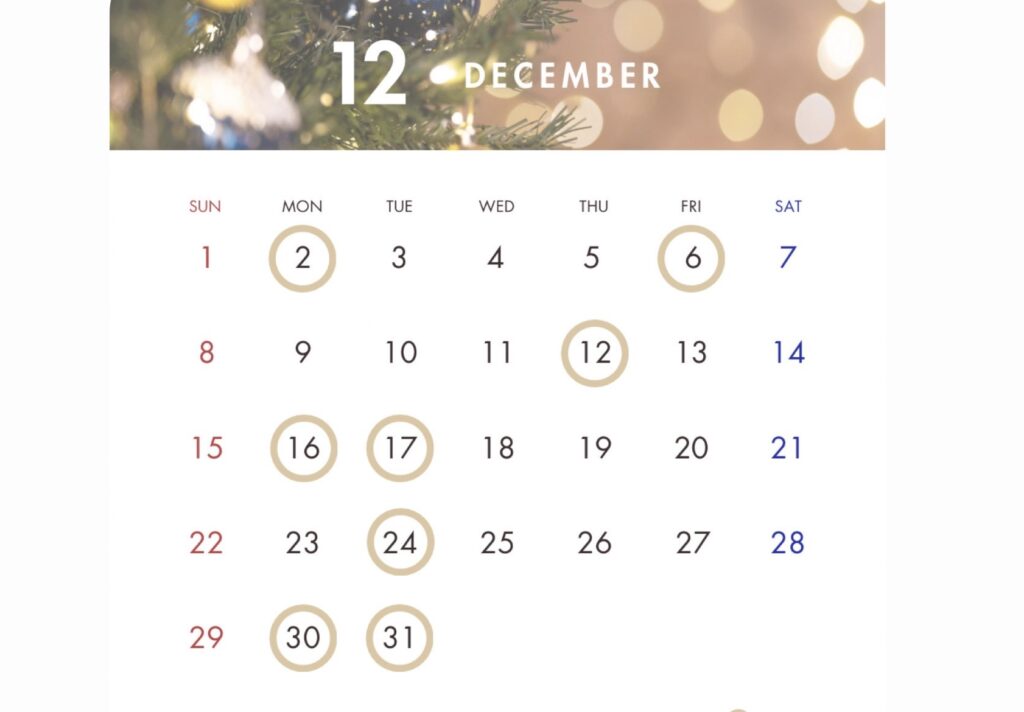 12月の営業日のお知らせです♪
